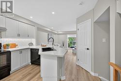 Welcome to this beautifully updated desirable Headon Forest 3 bedroom town house. Freshly painted in neutral tones. The Kitchen cabinets have been recently re-faced with white shaker style doors. This kitchen sparkles with the crisp white ceramic tile backsplash, classic black appliances, and double black sink. The open concept Living dining area which has a large sliding glass door that leads to the patio. Enjoy 3 season's on the private patio overlooking a quiet treed green space. All three finished levels have neutral laminate flooring. The 2nd floor offer 3 bedrooms the large primary bedroom has a private 2 piece ensuite, double closet doors, California Shutters, and bay window over looking the treed line area. With 2 more bedrooms both dressed with California Shutters and 4 piece main bath, it is the perfect space for a growing family. The basement area is finished just waiting for you to enjoy all of your family gatherings. This townhouse is close to all amenities shopping, restaurants, parks, and close to highways. Don't miss the opportunity to own in this family friendly neighbourhood. (id:7525)