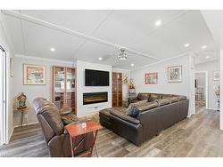 Welcome to 4449 Milburough Line, #28 Ash Street in Burlington — a beautifully maintained 2-bedroom, 2-bathroom home located in the quiet and friendly community of Lost Forest Park. Less than five years old, this modern home features an open-concept layout with an oversized two-tone custom kitchen island, perfect for entertaining. The spacious kitchen offers ample storage, while the separate dining area and built-in electric fireplace create a warm and inviting atmosphere. A dedicated office space provides privacy for work or hobbies, and pot lights throughout add a bright, contemporary touch.Step outside to a stunning Lumon-enclosed 3-season sunroom, perfect for relaxing, hosting guests, or stargazing on clear nights. Lost Forest Park offers peaceful surroundings and a strong sense of community, complete with amenities like an in-ground swimming pool, horseshoe pits, and beautifully landscaped grounds.Whether you’re looking to downsize or simply enjoy a tranquil lifestyle with the convenience of modern updates, this home offers the perfect year-round retreat.