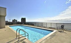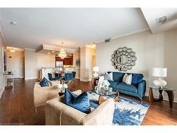 Wake up to breathtaking lake and park views every morning in this beautifully updated suite at Bunton’s Wharf, one of downtown Burlington’s most sought-after waterfront residences. Offering 1,407 sq. ft. of refined living, this 2-bed, 2-bath condo blends luxury, comfort, and an unbeatable location along the shores of Lake Ontario. The bright, open-concept living and dining areas feature 9 ft ceilings, LED pot lights, crown moulding, and rich maple engineered flooring. Step onto your private balcony to enjoy serene views of Spencer Smith Park and the waterfront, the perfect backdrop for morning coffee or sunset unwinding. The gourmet kitchen is a standout, complete with high-end Fisher & Paykel appliances, a two-drawer dishwasher, granite counters, breakfast bar seating, and a generous walk-in pantry with in-suite laundry. Both bedrooms offer walk-in closets, oversized bay windows, and stunning lake views, while the two spa-inspired bathrooms provide comfort and elegance. Enjoy resort-style amenities, including two fitness centres with a golf simulator, a rooftop heated pool and terrace with BBQs, a party room, a games room, sauna, and concierge service. This unit includes underground parking and a same-floor locker, offering exceptional day-to-day convenience. Steps to Spencer Smith Park, the Burlington waterfront trail, boutique shopping, fine dining, cafés, and Joseph Brant Hospital, all with quick access to the QEW, 407, and GO Transit. Two small pets (up to 20 lbs each) are permitted.