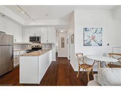 A wonderful classic condo unit in Aldershot South! This 2 bedroom 1 bathroom unit has over 700 square feet and a westfacing balcony perfect for watching the sun go down. The unit open ups to bright and airy living room with plenty of naturallight, a dedicated room for comfort and the perfect gathering space. Walk-out to the private west-facing balcony and enjoysunsets all year round. The kitchen provides a peninsula configuration with granite countertops, stainless steel appliancesand sufficient cupboard space. Down the hallway sits the primary bedroom with western exposure and a walk-in closet.The second bedroom is a flexible space to fit any buyers needs. The unit is complete with hardwood flooring and a neutralcolour palette throughout, a spacious 4-piece main bathroom, and in-suite laundry. With exclusive use of one undergroundparking space and a locker for any extra storage. Ideally located on the edge of the esteemed Aldershot Southneighbourhood, enjoy a stroll to LaSalle Park and the Marina, with easy access to the GO Station, major highways andMapleview Mall!