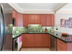 Experience refined condo living at The Maples, a highly regarded residence in the heart of downtown Burlington. This bright and inviting two-bedroom, two-bathroom corner suite offers approximately 1,430 square feet of thoughtfully designed living space. Morning light fills the bedrooms, while the kitchen captures the soft evening glow, creating a warm and welcoming atmosphere from sunrise to sunset. The spacious living and dining areas open to a private balcony, perfect for relaxing or entertaining. The kitchen offers modern finishes, ample cabinetry, and stainless steel appliances. Both bathrooms are well maintained, and the unit is beautifully cared for throughout. Additional conveniences include in-suite laundry, generous storage, an exclusive-use locker, and one underground parking space. The building offers a strong sense of community, with amenities such as a top-floor party room with a terrace and a guest suite for visitors. Steps from the lakefront, Spencer Smith Park, fine dining, and boutique shopping, this suite offers the perfect blend of comfort and convenience in downtown Burlington living.