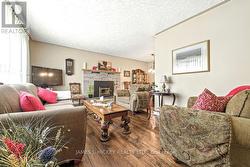 This delightful 1.5-storey home boasts a welcoming front foyer leading into a bright living room featuring an air-tight wood fireplace, perfect for cozy evenings. The sun-filled kitchen and dining area are enhanced by beautiful oak cabinetry. Upstairs, you'll find two generously sized bedrooms and a tastefully updated 4-piece bathroom. The finished basement offers a spacious recreation room, a convenient 2-piece bath/laundry area, and a utility room, ideal for additional storage. Outside, enjoy your own private retreat with a large, country-sized lot, a double garage, and a stunning 20' x 40' inground pool, perfect for summer relaxation. Additional features include gas heating, central air conditioning, and included appliances: fridge, stove, washer, and dryer. New roof 2025. Don't miss this rare combination of comfort and outdoor living! Minimum 24hr irrevocable on all Offers (id:27)
