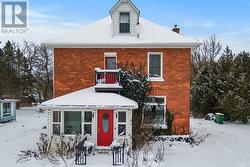 Charming Century Home with Character and Potential. This solid, double-bricked 2.5-storey century home welcomes you with a covered front porch that opens into the charm of yesteryear. Original woodwork, doors, trim, stained glass, French doors, and an oak staircase highlight the timeless craftsmanship throughout. The main level features a formal living room with French doors, a formal dining room, an eat-in kitchen with appliances, a bright sunroom with walkout to the large backyard and deck, plus a convenient main-floor laundry combined with a 2-piece bath. Upstairs you'll find three bedrooms-each with closets plus a 4-piece bathroom. Need more space? The unfinished attic is a wide-open opportunity, ready to be transformed into a teen retreat, family room, studio, or anything your imagination inspires. Some updates have already been started, including wallpaper removal and original floor refinishing. Additional improvements include a new 100-amp breaker panel, updated wiring, some new windows and exterior doors, and a gas furnace. The generous backyard offers ample room for gardens, children's play, and outdoor relaxation. With a little creativity and a passion for historic homes, this property can become your dream space. Located in the growing village of Markdale, you're within walking distance of the school, hospital, shopping, park, and golf course. Owen Sound is just 30 minutes away and Shelburne is 40 minutes. Close to Beaver Valley, Lake Eugenia, and the Bruce Trail, the home offers easy access to exceptional recreational amenities. Move-in ready while you envision and plan your transformation. (id:7525)