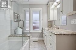 Welcome home to an elegant and spacious stone-faced ranch bungalow perfectly situated in one of Guelph's most desirable and established neighborhoods. Built in 1960, this home offers generous living space and is bathing in natural light. The heart of the home is a custom built kitchen (2010) with lots of storage space and granite countertops. The grand living room features one of two cozy gas fireplaces (2017) and custom built-in shelves, creating an inviting space for both quiet evenings and large-scale social gatherings. Walk out to the upper deck to extend your living space for private dining and entertaining. With a very spacious primary bedroom, you will find your own ensuite bathroom and unbelievable closet space! Enjoy your retreat with tons of light coming through many windows or close the California shutters (2018) for a peaceful night's sleep. This main floor has two additional bedrooms and a bathroom with granite countertop and glass shower doors. Descend to the lower level where you will find a second massive living area centered around another gas fireplace and many windows providing you with ample natural light. A great feature of this beautiful home is the walk out to the backyard. Entertaining is extended through this garden level retreat. The backyard could be the perfect spot for your dream pool! Additional notes: Roof (2023) (id:27)