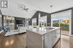 Elegance and sophistication await in this one of a kind "Bristol" model by Charleston Homes in the Noble Ridge community of Rockwood. With $300,000 of upgrades, this home offers over 3,300 square feet of finished space and was designed to meet the expectations of the most discerning homebuyers. At the heart of this home is the showstopping kitchen featuring upgraded Barzotti cabinetry, Silestone Counters, an oversized island with double waterfall design and premium Miele appliances including a convection wall oven, speed oven, warming drawer and 36" gas range. The open-concept great room offers soaring cathedral ceilings, custom built-in cabinets, linear gas fireplace and integrated 5.2 surround sound system. The main level is complete with a separate office space, dining room, powder room and mudroom with laundry. The primary retreat includes an oversize walk-in closet and spa-like five-piece ensuite with deep soaker tub, twin floating vanities and a frameless glass shower. The second bedroom also features a 4 piece ensuite bath. The fully finished walkout basement is complete with a second great room, an additional bedroom, wet bar and a 3 piece bath. The garage is finished with the same attention to detail including epoxy floors, wall panel organizer system plus a premium steel workbench and cabinets. Additional upgraded finishes include premium porcelain and hardwood flooring, upgraded trim and light fixtures and "Control 4" whole home automation including motorized blinds throughout. With too many additional features to list, you need to view this home to learn all it has to offer. (id:27)