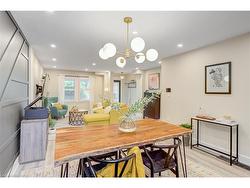 This charming 2.5-storey home is perfectly situated in the heart of Central Hamilton, just steps from the vibrant beauty of Gage Park. This thoughtfully updated residence blends timeless character w/ modern conveniences, offering 3 bdrms, 2.5 baths, & quality upgrades throughout. The inviting covered front porch sets the tone for this warm & welcoming home. Step into a spacious foyer that flows seamlessly into the open-concept living & dining room, where pot lighting illuminates rich updated flooring & a striking feature wall adds depth & style. The updated kitchen features white cabinetry, S/S appliances, butcher block countertops, & a classic yet modern aesthetic - ideal for family meals or entertaining. A piano-style staircase leads to the 2nd level where you’ll find two generous bedrooms, including one with a charming bay window that floods the room with natural light. An exterior door on this level offers access to the flat roof over the kitchen - a space brimming with potential. The gorgeous 3-piece bathroom features an oversized glass shower with elegant finishes. The third level is a true primary retreat, offering two closets and a spa-inspired 3-piece bathroom with a luxurious stand-up glass shower. The unspoiled lower level provides excellent storage space, laundry facilities, and a finished 2-piece powder room. Enjoy a low-maintenance rear yard with turf and a deck, leading directly into the oversized 1.5-car garage with an updated door. Recent updates include windows, roof shingles & eavestroughs (2017), flooring & light fixtures (2020), central air conditioning (2020), electrical panel (2020), replaced main cast iron drain (2020), and furnace (2023). California shutters and oversized mouldings throughout preserve the home’s original charm while offering modern functionality. With a walkable lifestyle at your doorstep - cafés, shops, and quick access to major transit - 39 East Bend Avenue South is the perfect blend of location, character, and upgrades.