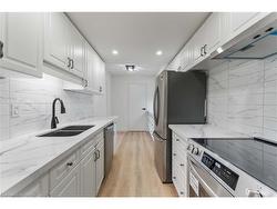 Be the proud new owner of this beautifully renovated 2 bedroom, 2 bathroom condo in the highly desired Durand building. This unit features breathtaking southwest escarpment views from the spacious living room and both bedrooms. The expansive kitchen is finished with calacatta gold quartz countertops, comes with new appliances and has a bonus pantry offering valuable additional storage. Also, rarely found in condo buildings, this unit has its own laundry room, which makes it convenient to stay organized. The condo fee covers all utilities (electricity, forced air heating and cooling and water), maintenance of grounds and secured underground parking (1 space), diligent on-site superintendent, as well as responsive property management. Take advantage of meticulously maintained amenities including an indoor pool and hot tub, sauna, outdoor barbeque patio, fitness room, library, and covered visitors parking. The Durand is centrally located with quick access to shopping, Hamilton GO Station, St. Joseph’s Hospital, the 403 highway, HAAA and Durand Parks, and the Bruce Trail. Tremendous value!