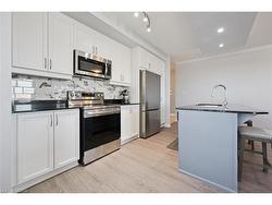 Located in Belmont Village Condominiums, this 8th floor unit offers care-free living in a beautiful, well-kept building. Step inside the unit and appreciate the built-in cabinetry and large coat closet. Spacious open-concept kitchen/dining room/living room layout with updated luxury wide-plank flooring in the main living space and both bedrooms. Ceramic tile in the foyer, laundry room and both bathrooms. Freshly painted throughout, this unit shows so well and is truly move-in ready. The laundry room has a new stackable washer/dryer set (2024) plus room for a second fridge and extra storage space. The white kitchen has new stainless fridge, stove and microwave, granite counters, an island with extra prep space and plenty of storage. This corner unit is bright with lots of natural light and 180 degree views of the city. The primary bedroom is large and has a walk-in closet and primary bathroom with double sinks and walk-in shower. One underground parking space that is close to the building entrance plus lots of visitor parking outside. Building amenities include: party room, media room, exercise room, games room, guest suite, community BBQ on the patio. Condo fees include heat, air conditioning and water. Centrally located and walkable to all the shops and restaurants in Belmont Village, the Iron Horse trail, and quick access to Uptown Waterloo or Downtown Kitchener.