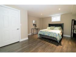 Welcome to this executive 4-bedroom, 4-bathroom detached 2-storey home, built in 2016 and located in the prestigious Fernwood Estates subdivision in Niagara Falls. Step inside to find rich, dark hardwood flooring throughout both the main and second floors, with no broadloom anywhere in the home. Nine-foot smooth ceilings and pot lights on the main level create a bright, upscale feel, while the impressive open-to-above foyer sets the tone for the rest of the home. The gourmet kitchen is a chef's dream, featuring granite countertops, a stylish backsplash, a breakfast bar, and stainless steel appliances. Porcelain tiles highlight the foyer and spacious laundry room, which also provides a walkout to the double-car garage. Upstairs, the large primary suite offers a luxurious 5-piece ensuite bath and a walk-in closet. Three additional well-sized bedrooms share a third 4-piece bathroom. The finished lower level, accessible via a separate walk-up through the garage, offers vinyl flooring, a large recreation/family room, a potential fifth bedroom, a full 3-piece bathroom, and a cold room for extra storage. The exterior is equally impressive, featuring a stone and stucco finish, an exposed aggregate driveway with parking for four vehicles, and a covered concrete patio ideal for outdoor entertaining. Built with style and functionality in mind, this 2016 home combines elegance, comfort, and premium finishes throughout.