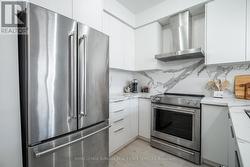 No detail was overlooked in the professional renovation of this luxurious executive townhome. Nestled in the highly desirable Oak Park neighbourhood of Oakville, it offers the perfect balance of convenience and natural beauty, with easy access to local amenities, scenic trails, and parks, as well as being just minutes from major highways. Highlights include Kitchen Aid appliances, elegant porcelain countertops with waterfall edge and backsplash, stunning oak wood flooring, modern lighting, and California shutter throughout. The expansive top-floor patio equipped with a gas line, is ideal for entertaining. Additional storage space is provided with a garage and locker below. (id:27)