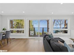 Welcome to this beautifully renovated bungalow, perfectly positioned on the inviting shores of Lake Simcoe. This home is an ideal retreat for those who cherish waterfront living with modern comforts. Completely remodeled from top to bottom this cottage or waterfront home is practically brand new inside and out. Upon entering, you are welcomed into a spacious open-concept area, where stunning lake views meet highend finishes. The kitchen boasts quartz countertops and new stainless steel appliances, creating a stylish and functional space for cooking and entertaining. Adjacent is the living and dining area, complete with a new gas fireplace, adding warmth and ambiance to the room. The home features two large bedrooms, ample space for family and guests. Additionally, a quaint one-bedroom bunkie with a private balcony offers extra accommodation, perfect for visitors seeking privacy. For those considering future expansions, permit-ready plans are available. These include adding a main floor primary suite with a full en-suite bathroom and a third bedroom on the lower level, enhancing the home’s versatility and appeal. Outside, a new 40-foot dock and expansive deck await with a stand for kayaks and paddle boards, setting the stage for unforgettable summer days filled with water activities and relaxation. Upgrades include new James Hardie siding, new electrical panel and wiring throughout the house, upgraded well & UV system, new asphalt driveway, landscaping completely redone, new glass railings throughout interior & exterior, new soffit and fascia (2021) and more. With gorgeous south east views across Carthew Bay and Lake Simcoe, this waterfront gem is ready to be your summer sanctuary. Located less than 15 minutes to Orillia for shopping, and an hour from the GTA, access and convenience is a breeze.