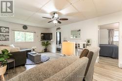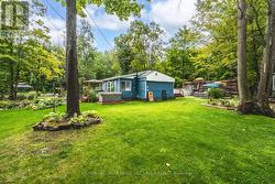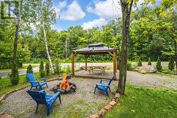 MOVE-IN-READY BUNGALOW ON A 150 X 100 FT LOT WITH POOL & GORGEOUS LANDSCAPING NEAR THE WATERFRONT! Close to the water and minutes from downtown, this beautifully maintained bungalow located at 28 Wozniak Road offers a relaxing lifestyle on a generous 150 x 100 ft corner lot. The property showcases gorgeous landscaping with mature trees, emerald cedars, colourful garden beds, and decorative landscape rocks that frame the space with natural beauty. Outdoor enjoyment takes centre stage with an above-ground pool with a wood platform, a patio, a 10 x 6 ft deck, and a hardtop gazebo with a fire pit. Three driveways provide convenient parking options, and a 50-amp breaker in the side yard is ready for RV hookup or future outbuilding power. The open layout feels bright and inviting, featuring easy-care laminate flooring, neutral paint tones, and a functional kitchen with grey cabinetry, a tile backsplash, and a large pantry. Two bedrooms and a 3-piece bath with laundry offer practical, one-level living. Recent updates include newer shingles, repainted blue vinyl siding, and a newer front deck, giving this property a fresh, move-in-ready feel. Located close to the waterfront trail, Discovery Harbour, King's Wharf Theatre, the Centennial Museum, local shops, restaurants, parks, and schools, this #HomeToStay combines comfort and convenience in a setting you'll love! (id:27)