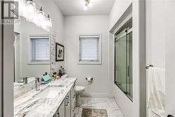 Looking for a new build that is both modern and sophisticated? This 1,651 square foot Dalron constructed home in the desirable upcoming Minnow Lake area is move in ready. Upon arrival, you'll be greeted with stunning curb appeal with a double wide interlocking driveway, landscaping with rocks, mulch and lighting and single car garage. Enter into the home to find a spacious foyer with porcelain tile flooring, large closet and access to the garage. Minimal stairs take you to the second level to the large open concept living/dining, kitchen combo, featuring gorgeous matching modern yet warm light fixtures and plenty of entertainment space. Kitchen highlights 3 Fantasy Grey granite counter tops, updated & expanded custom cabinets, gloss reflecting backsplash, ""Blanco"" double sink with touchless faucet and soap dispenser. Exceptional kitchen appliances included feature Samsung smart fridge, Samsung smart stove, Sharp built in drawer microwave, Samsung dishwasher and Frigidaire cooling fridge. Off the kitchen to the large deck featuring a gas BBQ hook-up and plenty of space for summer entertaining. Backyard offers a large shed, full patio stone coverage and flower garden. Off the kitchen, you'll find a 4 piece bathroom featuring beautiful tile flooring, updated vanity with granite countertops, stone backsplash, glass siding doors in the tub surround and plenty of storage. Primary bedroom offers 2 closets and lush carpeting. Another bedroom with closet completes the main level. Head down to the basement where you'll find a large rec room, 4 piece bathroom with updated vanity with granite countertops, stone backsplash and siding glass doors in the tub surround. Another large bedroom with a closet. Laundry room with a LG smart washer & dryer, with quartz countertops, tons of cabinet space and laundry tub. Updates valued at over $80k. This property also offers transferable Tarion warranty! Come see for yourself the quality and style this home has to offer. (id:27)
