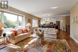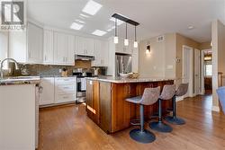 Absolutely stunning custom-built 4-bedroom bungalow on a quiet cul-de-sac in the South End. This one-owner home showcases quality craftsmanship throughout, featuring engineered oak hardwood across the main level and a gorgeous custom kitchen with granite counters and a large island. The fabulous foyer opens to a bright, sun-filled living space with large south-facing triple-glazed windows that flood the home with natural light while maximizing energy efficiency. Designed for superior comfort and performance, this double-wall, super-insulated, ICF-constructed passive solar home delivers year-round warmth, quiet, and remarkable energy savings. The lower level is fully finished with a bright family room, two additional bedrooms, a full bathroom, and a finished laundry room. Step outside from the upper level to a professionally landscaped, easy-care backyard that backs onto protected conservation land — offering a true connection to nature in every season. Striking curb appeal, a beautiful stone façade, and a circular driveway complete the picture — because why back up when you can keep moving forward? Better than new and shows like a dream — a rare opportunity to own a thoughtfully engineered home that blends beauty, efficiency, and timeless design. (id:27)