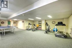 Maintenance-free living in beautiful St. Clair Beach/Tecumseh located in sought-after Village Grove, just one block from Lakewood Park, trails, shopping, banking, professional services and restaurants. This updated 2 bedroom, 2 bath suite offers a remodeled kitchen with custom oak cabinets, roll-outs, pantry, ceramic backs plash, granite counters and stainless steel appliances. Both bathrooms feature custom walk-in showers. The primary bedroom includes a walk-in closet and ensuite. In-suite laundry with washer, dryer, and storage. Ceramic and engineered hardwood floors throughout. A triple-wide patio door opens to a private balcony with gas BBQ hook up and quiet east exposure. Most doors are 36"" with pocket doors for wheelchair accessibility. Deeded underground parking and assigned storage locker included. Concrete constructed building with north and south entrances, each with its own elevator and only 4 suites per floor, per side. This is a LARGER CORNER SUITE at the rear of the building with peaceful North/East exposure. Amenities include outdoor pool, racquet courts, party room with fully equipped kitchen, fitness area with saunas and bathrooms. Enjoy the lifestyle you deserve (id:27)