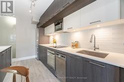 Welcome to Avenue on 7! A boutique style building nestled in a prime residential neighbourhood with LTR at your doorsteps and short ride to subway station. This one of a kind end unit boasts 946 sq.ft with soaring 10 ft ceilings. Fully upgraded with may custom features: crown moldings, coffered ceiling with potlights, kitchen features stainless steel appliances, quartz countertops, double uppers, backsplash, under cabinet lighting & waterfall moveable island. Generous size bedrooms with custom built-in wardrobes; full size walk-in laundry room with sink. Enjoy the large rooftop deck complete with pool, BBQ area, playground. Guest suites, billiards, gym and sauna. 114 sqft large terrace with tranquil northwest views (id:7525)