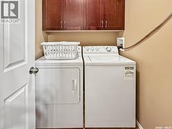 Welcome to 114-825 Gladstone St. E., an exquisite condo that combines modern construction with an open-concept layout in a prime location. Situated near Swift Current Creek, this property offers easy access to scenic walking paths, the Chinook Golf Course, and Riverside Park. Constructed in 2014, this inviting condo community is designed for contemporary living. Upon entering, you'll be greeted by a spacious open-concept layout featuring a U-shaped kitchen equipped with rich cabinetry, including a dishwasher, stove, and fridge. The kitchen provides ample space for an island, seamlessly connecting to a generous dining area and a bright living room with a balcony sporting an excellent view. The suite includes two generously sized bedrooms. The master bedroom features a four-piece bathroom with dual access, functioning as an en suite while remaining accessible from the second door. Additionally, a two-piece bathroom is conveniently located alongside a laundry room, which includes an air exchanger for optimal air circulation. Further along the hall, discover a versatile den adaptable for use as an office, playroom, workout area, or flex space. This unit boasts PVC windows and efficient boiler heating, included in your condo fees along with common area insurance, water, and maintenance. Enjoy maintenance-free exterior living, with no need for snow shoveling or lawn care, allowing you to indulge in the comforts of a modern property and a carefree lifestyle. Nearby amenities include a grocery store, gas station, multiple parks, walking paths, a swimming pool, and a K-12 school, all within walking distance to the community college and downtown. Call today for more information or to book your personal viewing. (id:27)
