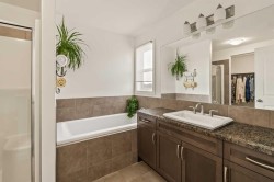Beautifully renovated with timeless style and a thoughtful layout, this Kings Heights home enjoys one of the largest pie lots in the community backing directly onto a greenspace and pathway. A quaint front porch welcomes guests while offering a quiet spot to enjoy morning coffee. Inside, the open concept main floor combines function and elegance with a neutral colour palette, durable luxury vinyl plank flooring and abundant natural light. The kitchen inspires culinary creativity with crisp white cabinetry, stainless steel appliances, a centre island for casual meals, a walk-through pantry for easy grocery unloading and a coffee bar for everyday convenience. The adjacent dining area with designer lighting flows seamlessly into the inviting living room where a gas fireplace adds cozy ambience. A powder room with a stylish feature wall completes the level. Upstairs, the primary retreat impresses with generous proportions, a walk-in closet and a private 4 pc ensuite. Two additional bedrooms are both bright and spacious, paired with a 4 pc main bath. Laundry on this level adds everyday ease. The finished basement continues the home’s stylish design, offering a versatile rec room with space for both cozy family movie nights and lively game evenings. A well-appointed wet bar makes entertaining effortless and keeps snacks and drinks close at hand. Also on this level is a generously sized 4th bedroom creating a private retreat for guests, while the beautifully updated 4 pc bathroom showcases a floor to ceiling tile feature wall and modern fixtures that add spa-like sophistication. Outdoor living reaches new heights thanks to the massive pie-shaped yard. A 2-tiered deck provides space to unwind, dine al fresco and barbeque, while a separate firepit area invites long summer evenings under the stars. Lush landscaping, expansive lawn space for kids and pets to play, a storage shed and built-in irrigation further elevate this private outdoor escape. Completing the property is a front-attached garage with additional driveway parking. Unbeatably located in a family-friendly and highly walkable neighbourhood, this home is surrounded by schools, playgrounds, parks, fountains, pathways and even a timber amphitheatre. Shopping, dining and quick access to the QEII for commuting are only minutes away. This home blends lifestyle, comfort and location into one complete package!