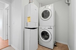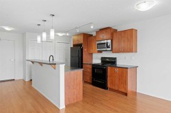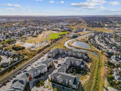 Welcome to this bright and inviting 2-bedroom, 2-bathroom condo in a prime NE corner, top-floor location. With east-facing windows that flood the space with morning light, you’ll love starting your day with coffee on the private balcony overlooking the sunrise.Inside, enjoy the comfort of in-floor heating powered by an efficient Bosch boiler control system. The kitchen features a breakfast bar, garburator, and plenty of cabinetry—perfect for both cooking and entertaining. The open-concept layout flows seamlessly into the living and dining area, creating a spacious, airy feel.The Primary bedroom features a walk-in closet, additional closet storage, and a 4-piece ensuite. An additional bedroom on the opposite side of the unit has quick access to a 4-piece hall bathroom.Additional highlights include in-suite laundry with a stacking washer and dryer, underground titled parking, and ample visitor parking (registration required). This non-smoking, no-pet unit has been well cared for and offers a quiet, low-maintenance lifestyle.Conveniently located with easy access to 8th Street, Veterans Blvd, and Hwy 2, you’re just a short walk to walking paths, parks, and public transit. Nearby amenities include Silvercreek Shopping Centre (restaurants and services), Airdrie Gateway (Superstore, Canadian Tire, dining, and more), and Creekside Crossing. Golf enthusiasts will appreciate being just minutes from Woodside Golf Course and driving range.This top-floor home combines comfort, convenience, and lifestyle in one perfect package.