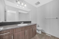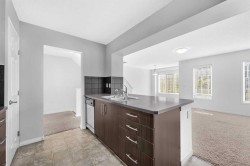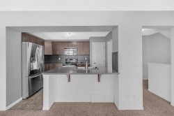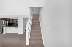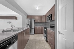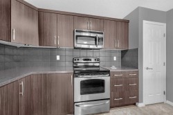 Beautiful 3 Storey Townhouse with NO CONDO FEES located in the family friendly community of Windstore, SW Airdrie! This home is in pristine condition with upgrades! Main level features an open concept plan including a beautiful kitchen with rich dark cabinetry complimented by stainless steel appliances, tile back splash & breakfast bar. A large living room with huge windows allow for an abundance of natural light to this great space. Dining room is spacious & has a patio door leading you to your sunny South facing private balcony with room for seating & BBQ. On the top floor, you will find a comfortable den perfect for a computer workspace & 2 good sized bedroom. The master boasts a 4pc ensuite with a cheater door & large walk-in closet! Ground level entry has plenty of room to sit & enjoy and also has a convenient laundry room, and utility room with ample storage & access to the over sized attached garage. This is a great house, perfect for the first time home Buyer or an Investor!