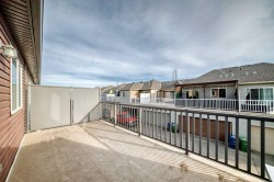 Welcome to the heart of southwest Airdrie — where convenience meets comfort!Located just off the new 40th Avenue interchange, this beautifully maintained 2012 row townhouse offers quick and easy access to everything Airdrie and Calgary have to offer. You’ll love being just minutes from Windsong School, Coopers Crossing Shopping Centre, CrossIron Mills Mall, and the Calgary Airport — the perfect location for busy families and commuters alike.This NO CONDO FEE home is individually titled and features a double attached garage and low-maintenance yard. Inside, you’re greeted with elegant hardwood floors and an open-concept main level that flows seamlessly between the kitchen, dining, and living areas — perfect for entertaining or relaxing at home.Upstairs, enjoy a spacious bonus room — perfect for a home office, cozy family movie nights, or a quiet den — with access to your private balcony above the garage, ideal for morning coffee or evening sunsets. The primary bedroom includes a private ensuite, while two additional bedrooms and a 4-piece bath complete the upper level.The unfinished basement with a rough-in for a future bathroom provides the perfect opportunity to expand your living space as your family grows.Come experience this vibrant and accessible area of Airdrie — your new home awaits!