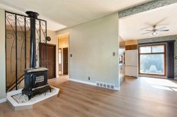 Bring your vision to this 4-bedroom bi-level on a 50 x 179 ft EXTRA LARGE LOT in the heart of The Village. Step into the spacious front entry with plenty of storage. Upstairs, you will find a bright living room that flows into the dining area and kitchen, ready for a modern refresh. The primary bedroom is a comfortable size, and the second upstairs bedroom has been converted into a functional hair salon, perfect for a home-based business or easily turned back into a bedroom. The lower level offers two additional good-sized bedrooms and a cozy family room with built-ins (which could be converted into a fifth bedroom if needed). The true highlight of this property is the incredible yard, it’s massive and full of potential for gardening, entertaining, or even future expansion. There is also a tandem garage for extra parking or workshop space. Recent updates include brand-new flooring on the main level and a NEW ROOF (Oct 2025). Homes on lots this size rarely come available at this price, don’t miss the chance to put your stamp on a property with so much potential!