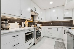 Welcome to this beautifully updated home in the highly sought-after Varsity neighbourhood—known for its quiet streets, mature surroundings, and unbeatable proximity to amenities including the University of Calgary. This stylish and functional property offers exceptional value, very low condo fees, and a healthy reserve fund, making it a sound investment for first-time buyers, young professionals, or university students.Step into a newly renovated kitchen featuring elegant quartz countertops, all-new stainless steel appliances, redesigned cabinetry that provides extra counter space, and a full-length pantry for outstanding storage. New tile flooring, upgraded lighting, and under-cabinet illumination enhance both style and practicality. From the kitchen, step onto the large private deck, perfect for morning coffee or outdoor entertaining.The main level includes a bright and inviting living room with a wood-burning fireplace and expansive windows that flood the space with natural light. A separate laundry and utility room adds convenience, storage and improves the overall functionality of the layout.A chic wooden staircase leads to the upper level, where you’ll find two generously sized bedrooms and a refreshed 4-piece bathroom with a new vanity. The primary bedroom is impressively spacious and features its own private balcony, while the second bedroom offers ample room for guests, a home office, or personal retreat.Complete with central AC, thoughtful updates, and located in one of Calgary’s most desirable neighbourhoods, this home checks every box. Don’t miss your chance to own a beautifully updated property in an unbeatable location.