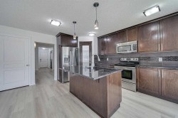 WOW! Fully developed 2 storey with over 2700 sq. ft. Totally upgraded with New Roof Shingles/Eaves/Flooring/Freshly painted/Baseboards and Shows like New. Located in the special Enclave of SAGE MEADOWS of Sage Hill, where all the Detach Homes are Stucco. MAIN FLOOR - 9' Ceilings, Flex room as you enter, Family room with Fire place, Big Kitchen with Island & Pantry and Granite Counters, Dining area and door to the Deck, Den (could be used as Bedroom), 3 pcs Bathroom and Laundry room. UPPER - 3 good size Bedrooms, Bonus room, Full Bathroom. Master Bedroom is Huge with full 5 pcs Ensuite and a walk in closet. BASEMENT - Large Rec Room with wall to wall cabinets, Den, storage and 3pcs Washroom. OTHER - Garage is all drywalled and painted, Good size Deck, Stucco/Stone siding, Nice Yard with storage shed. Vacant for immediate possession. Please review the Virtual/photos/3d walk thru and much much more to get the full glimpse of this Home.