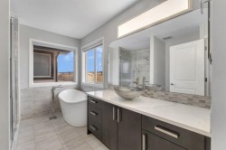 Welcome to this stunning fully upgraded east-facing 2-storey home in the desirable community of Saddlebrook, perfectly situated backing onto GREENSPACE, PARK AND SCHOOL. This elegant residence features 3 bedrooms, 2.5 baths, and a professionally finished basement with a separate entry. The main floor offers a spacious, sun-filled family room and a beautifully renovated gourmet kitchen complete with granite countertops, a pantry, island, electric stove, and refrigerator. A charming dining nook overlooks the backyard, while the convenience of main floor laundry and elegant ceramic tile flooring add to the home’s appeal. Upstairs, the luxurious primary suite boasts a walk-in closet and upgraded ensuite with a multifunction shower panel and glass doors. Two additional bedrooms and a generous bonus room with a cozy corner fireplace complete the upper level, which features modern laminate flooring and no popcorn ceilings. The basement provides excellent versatility with a one-bedroom plus large den setup, a full kitchen, and a 4-piece bath—ideal for extended family or rental potential (illegal suite). Outside, the yard includes quality concrete work and a 10x10 storage shed, and the heated garage is equipped with a 50,000 BTU Big Maxx Mr. Heater and Costco panel storage for optimal organization. Conveniently located near bus stops, Genesis Centre, Saddletowne C-Train Station, schools, and all major amenities, this beautifully upgraded home offers the perfect blend of comfort, style, and functionality. DON'T MISS THIS OPPORTUNITY FOR OWNING THIS HOME BACKING ONTO GREEN SPACE! BOOK YOUR SHOWING TODAY!!!
