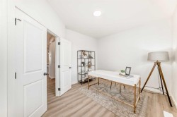 STARLING HAS BEEN QUIETLY BUILDING A REPUTATION—for calm streets, thoughtful design, and a nature-forward rhythm that buyers notice the moment they arrive. This home leans right into that energy. The WIDE FRONT PORCH sets a grounded first impression, and inside, natural light moves through the main floor with the kind of ease that makes the whole space feel instantly welcoming. Warm LVP, 9' CEILINGS, and a clean, modern palette work together to create that subtle “this feels right” moment you feel as soon as you walk in.And then there’s the FLEX ROOM.Framed with FRENCH DOORS and positioned with just enough separation from the main living spaces, it’s the RARE MAIN-FLOOR ROOM that feels truly intentional—not a leftover corner repurposed as an “office,” but a space with presence. It becomes whatever your life needs most: a polished workspace, a creative zone, a reading retreat, or simply a quiet room with a door when the rest of the house is in motion.The kitchen continues that thoughtful rhythm: QUARTZ COUNTERS, 42" UPPERS that keep the lines crisp, a CHIMNEY HOOD FAN that anchors the design, and storage placed exactly where real routines land. The SEPARATE SIDE ENTRY adds smart flexibility—practical now, and perfectly positioned for whatever plans come later.Upstairs, the layout stays calm and well-proportioned. Bedrooms sit where they should, offering both connection and privacy, and the upper laundry room keeps daily life where it actually happens. The primary ensuite is the unexpected luxury in this footprint: A SOAKER TUB, A TILE-AND-GLASS SHOWER, AND A DUAL-SINK VANITY—a trio rarely found together in homes this size, and one that quietly transforms both mornings and evenings.Outside, the REVERSE-PIE LOT is a meaningful advantage. It gives you a LARGER FRONT YARD AND A GENEROUS SIDE YARD, creating more breathing room, more natural light, and a sense of separation that’s uncommon in new communities. The off-street parking pad off the paved lane provides easy parking right at home—no street shuffle required. Add the REAR DECK with its BBQ gas line, front sod already in place, and 200-amp electrical service, and the long-term livability becomes clear.Set within steps of Starling’s PATHWAY NETWORK and nature-first streetscape, this is a home that blends light, flow, and flexibility with quiet confidence.BOOK A SHOWING and come see how naturally it fits the way you live. • PLEASE NOTE: Kitchen appliances are included, and will be installed prior to possession.