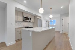 Welcome to your BRAND NEW 3-storey townhome in the vibrant community of Belmont, Calgary. This stunning home features 2 bedrooms, 2.5 bathrooms, and offers 1,358 sq.ft. of thoughtfully designed living space. The bright, open-concept main floor boasts a spacious living area with large windows, a modern kitchen with quartz countertops, full-height cabinetry, stainless steel appliances, and a cozy dining area that’s perfect for everyday living or entertaining. Step out onto your private balcony to enjoy your morning coffee or evening sunsets.Upstairs, you’ll find two generously sized bedrooms, each with its own full bathroom, plus a conveniently located upper-floor laundry. The entry level includes a tandem double attached garage, offering ample space for parking and storage.Located in Belmont, one of Calgary’s fastest-growing communities, surrounded by scenic pond walkways, playgrounds, and parks. Just steps from a future commercial plaza featuring a Tim Hortons, daycare, gas station, and a bus stand right in front of the complex.Enjoy quick access to Stoney Trail, Macleod Trail, and the future LRT extension, making commuting easy. Pet and rental friendly, this home is perfect for first-time buyers or investors seeking modern living, great value, and a thriving community lifestyle.