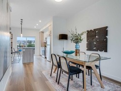 Explore a series of stylish heritage-inspired row houses located close to the center of our scenic Environment Reserve Park! This Heritage model A combines comfort and functionality, making it perfect for families and professionals. With 2 bedrooms, 2.5 bathrooms, and a flexible main-floor den, this expansive home is tailored for contemporary living. Upon entering, you will discover a bright ground-floor den or home office that includes a large window, a closet, and a handy powder room. Enjoy a beautifully landscaped front yard, a single attached garage, and additional parking in the driveway. The open-concept main floor features 9' ceilings and is bathed in natural light, creating a cozy and welcoming atmosphere for daily living or entertaining guests. The modern kitchen is equipped with quartz countertops, a breakfast bar, high-end stainless steel appliances, and a chimney-style range hood. Sliding doors lead to a full-sized balcony — perfect for unwinding or dining outside. On the upper level, there are two roomy bedrooms, including a primary suite that has a double access closet and a private ensuite with a stand-up shower and a sliding glass door. A second full 3-piece bathroom is available for the additional bedroom, which can also serve as a home office. The upper floor further includes a washer and dryer conveniently situated, a linen closet, and ample storage options throughout.This home is located in vibrant Springbank Hill and offers easy access to Aspen Landing, Rundle College, Griffith Woods, Ambrose University, restaurants, and senior care facilities.**The price includes GST.