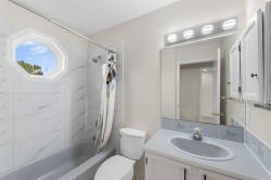 ** Gorgeously Renovated **Brand New: Flooring, Kitchen Quartz Countertops & Stainless Steel Appliances, Gloss Finished Full Height Cabinetry, Electric Fireplace, Custom Built-ins, Recessed Lighting and more! 1,656 SqFt | Open to Below Ceilings | Expansive Living Space | Large Windows | Open & Functional Floor Plan | Bay Windows Breakfast Nook | Main Level Laundry | 3 Spacious Upper Level Bedrooms & 2 Baths | Finished Basement with Bedroom & Den | Great Entertainment Space | Basement 3pc Bath | Ample Storage | Incredible Backyard | Deck | Patio | Fully Fenced Backyard | Firepit | Rear Lane | Front Double Attached Garage & Driveway | LOCATION LOCATION LOCATION! Welcome to your beautiful 2-storey family home that was newly renovated with stunning upgrades. Open the front door to a foyer with open to below ceilings, your brand new LVP flooring and closet storage to keep the space tidy. The main level has both an open and functional floor plan giving you flexibility with your living space. The front living room is spacious and bright with street facing windows. Separating the living and dining rooms is a wall with an arch cutout adding openness, depth and style to this space. The dining room is a step into the kitchen where you have an open floor plan concept kitchen, breakfast nook and family room. The kitchen is fully upgraded with sparkling quartz countertops, full height gloss finished cabinets and brand new stainless steel appliances. The breakfast nook has character bay window that overlooks the beautiful backyard. Off the nook is door that leads to the deck making indoor/outdoor living easy! The family room is centred with an electric fireplace framed with built-in shelving for all your personal photos and decor. The main level is complete with a 2pc powder room and laundry room. Upstairs has 3 bedrooms all with the new LVP flooring! The primary has a private 4pc ensuite bath with a tub/shower combo. Bedrooms 2 & 3 upstairs share the main 4pc bath. Downstairs, the finished basement has another bedroom, 3pc bath and a den. The bedroom is a great size! The den is a great flex space for a home office or short stays with overnight guests. The rec room provides you with a space for evening entertainment! The utility room is located downstairs and also has storage space. Outside is your incredible backyard with space for both living, dining and for the kids to play! The deck is a great space for a BBQ while the concrete patio is made for an outdoor dining or lounge set. In the middle of your lawn is a stone firepit for those cool evenings where you want to relax outside. Even though this home has a front attached garage, you also have a rear lane! The location of this home is perfect; second to Country Hills Blvd NE for an easy commute to Deerfoot and Stoney Trail. All shopping and amenities are down the street too. Hurry and book a showing at this gorgeous home today!