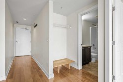 Welcome to University City, where contemporary sophistication meets effortless urban living. This exceptional east-facing residence showcases brand new luxury vinyl plank flooring and a freshly painted interior, offering a modern, move-in-ready space that exudes style and comfort. Capturing sweeping panoramic views of downtown Calgary through impressive floor-to-ceiling windows, this bright and inspiring condo is bathed in natural light throughout the day. Thoughtfully designed, the open-concept layout showcases a modern eat-in kitchen adorned with granite countertops, stainless steel appliances—including a newly replaced microwave hood fan—and abundant cabinetry that transitions seamlessly into living area, perfect for entertaining or unwinding against a backdrop of city lights. The spacious primary bedroom offers a serene retreat, complemented by a conveniently appointed 4-piece bathroom, central air conditioning, and in-suite laundry featuring a newer washer and dryer (replaced just last year). Enjoy the convenience of titled underground parking, an assigned storage locker, and exclusive access to a fully equipped fitness centre and secure bike storage. Perfectly positioned steps from Brentwood C-Train Station, the University of Calgary, Foothills and Children’s Hospitals, and an array of shops, restaurants, and major commuter routes, this residence embodies the best of contemporary city living. Short-term rental friendly and move-in ready, this immaculate condo presents a rare opportunity for both discerning homeowners and savvy investors alike. Quick possession available—your urban lifestyle awaits!