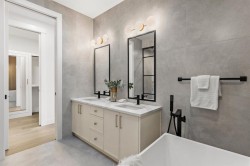 This extraordinary brick-exterior home is set in one of the most desirable locations and built by Jerry Homes with a thoughtfully designed, functional floor plan. A spacious foyer welcomes you into the main level with soaring 10-foot ceilings, a dining area accented with custom wood paneling, and a stunning kitchen featuring a massive 12-foot island, hidden walk-in pantry, high-end built-in Wolf and Dacor appliances, quartz countertops with under-cabinet lighting, and elegant gold accents. A beautifully crafted archway separates the kitchen from the great room, anchored by a custom multi-tier gas fireplace, while the mudroom provides ample storage. Large windows throughout the home fill every level with natural light, enhancing the open and airy design. Upstairs, 9-foot ceilings frame a lavish primary suite with two large walk-in closets and a spa-inspired 5-piece ensuite fully wrapped in designer tile, complete with steam shower rough-in, in-floor heating, and a soaking tub. Two additional bedrooms, a 3-piece bath, and a full laundry room complete the upper level. The fully developed basement includes in-floor heating rough-in, a spacious rec room, wet bar, fourth bedroom, and a 3-piece bath. Additional features include rough-ins for A/C, built-in ceiling speakers, an alarm system, and exterior cameras. Ideally located near top schools, parks, and the shops and restaurants of Marda Loop, this home blends quiet luxury with unmatched convenience. Call today to book your tour!