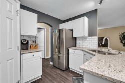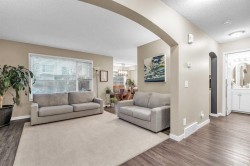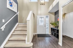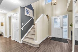 Welcome to Your Family’s Dream Home in EvanstonTucked away in a peaceful cul-de-sac, this immaculate duplex offers over 2,100 sqft of beautifully developed living space—perfect for growing families.Step inside to a vaulted entryway that creates an airy, grand welcome. Natural light pours in, setting the tone for the bright and inviting main floor, where spacious living and dining areas flow seamlessly into the backyard—ideal for entertaining or letting the kids play freely. The kitchen features quartz countertops, a stylish new backsplash, all new appliances and hood fan (with the dishwasher being original), and upgraded lighting that adds a modern touch. A convenient guest bathroom with an upgraded vanity and easy access to the backyard complete the main level.Upstairs, the sun-filled primary suite offers a walk-in closet, en suite, and a private balcony—the only duplex on the street with this feature. Two additional generously sized bedrooms provide plenty of space for family or guests.The basement boasts a large rec room with durable LVP flooring, perfect for playtime, movie nights, or a home gym. Recent upgrades include a new roof and siding in 2025, and a washer and dryer upgraded in 2023.Located in one of Calgary’s most desirable family communities, Evanston is known for its excellent schools, abundant green spaces, nearby shopping, and quick access to major roads. This home is within walking distance to local schools, parks, scenic walking paths, and expansive green spaces—ideal for families who value convenience and outdoor living.Don’t miss out—schedule your showing today and see why this home stands out from the rest!