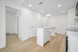 Welcome to this bright and stylish main-floor condo nestled in the vibrant community of East Hills Crossing. Offering over 500 square feet of thoughtfully designed living space, this one-bedroom, one-bathroom residence perfectly blends comfort, functionality, with modern appeal and located on the quiet side of the building. (No traffic noise in this unit) The open-concept layout showcases sleek white cabinetry, elegant quartz countertops, and a spacious eating bar that seamlessly connects to the versatile dining area—ideal for both casual meals and entertaining guests. Expansive windows bathe the interior in natural light, creating an inviting atmosphere throughout. Step outside onto your private balcony to enjoy a peaceful morning coffee or unwind on sun-drenched afternoons. Everyday convenience is at your fingertips with in-suite laundry and a titled underground parking stall. Situated just steps from East Hills Shopping Centre, you’ll have effortless access to Costco, Walmart, Cineplex, restaurants, and essential services. Outdoor enthusiasts will appreciate nearby parks and walking trails, while quick access to Stoney Trail ensures easy connectivity across the city—plus, downtown Calgary is only a 20-minute drive away. Whether you’re a first-time buyer, downsizer, or savvy investor, this condo offers a complete lifestyle package in an unbeatable location. Don’t miss your opportunity to make this exceptional home yours—book your private showing today!