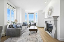 Welcome to luxury living at its finest in the prestigious Renaissance 18+ condominium development. This beautifully updated 2-bedroom, 2-bathroom residence with a dedicated office offers an elevated lifestyle in one of the city’s most sought-after locations.Step inside to discover a bright, open-concept layout enhanced by BRAND NEW luxury vinyl plank flooring, new baseboards and fresh, modern paint throughout. The heart of the home is a stunning, contemporary kitchen featuring upgraded cabinetry, gleaming new quartz countertops, a chic tile backsplash, and designer lighting—perfect for both everyday living and entertaining.Relax by the cozy fireplace in the expansive living area while soaking in breathtaking, unobstructed views of downtown Calgary. The spacious primary retreat boasts a spa-inspired 5-piece ensuite with dual vanities, a deep soaker tub, and a separate shower—an ideal space to unwind at the end of the day. This exceptional home also includes one titled, heated underground parking stall and an assigned storage unit for added convenience. Residents of the Renaissance enjoy exclusive access to world-class amenities, including a private concierge, fitness centre, games and craft rooms, a movie theatre, meeting room, outdoor terrace, and two luxurious guest suites. An elevator offers direct indoor access to North Hill Shopping Centre, while the nearby C-Train station provides quick, effortless access to downtown and beyond—just minutes away. Experience the perfect blend of comfort, convenience, and sophistication in this truly remarkable home. New staging furniture may be negotiated with price.