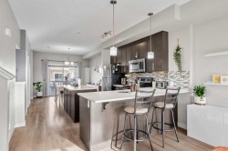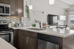 Flooded with natural light and situated on a safe, family-friendly street, 51 Redstone Circle NE offers a bright, contemporary townhome with thoughtful upgrades and a layout designed for comfort and low-maintenance living. With patio balconies on both sides of the main floor—one overlooking an open field and future school site, the other extending from the kitchen toward the quiet drive—this home embraces indoor–outdoor living in a uniquely functional way.The main living level features an open-concept design highlighted by quartz countertops, modern finishes, and a well-appointed kitchen equipped with Frigidaire stainless steel appliances, including a stove, fridge, microwave hood fan, and dishwasher. Abundant natural light flows through large windows, all finished with included window coverings, while thoughtful upgrades such as wall mounts add convenience for your entertainment setup.Upstairs, comfort continues with a dedicated laundry area featuring a Samsung washer and dryer, along with two well-sized bedrooms and additional storage. The home has been meticulously cared for—no pets and no kids—resulting in a clean, like-new interior ideal for move-in readiness.The entry level offers a single tandem garage, providing secure parking for two vehicles or extra space for storage, a workshop, or recreational gear. Whether you're a first-time buyer, investor, or downsizing, this versatile layout delivers both functionality and efficiency.Additional features include: All furniture negotiable, Window coverings included, Two balconies for added outdoor living space, Clean, well-maintained interior.Set in the growing community of Redstone—known for its access to parks, future schools, pathways, shopping, and major commuter routes—this home offers a rare blend of value, location, and style. With its bright interior, modern finishes, and move-in-friendly condition, 51 Redstone Circle NE is a standout opportunity in the northeast. *Entry level measurements added to main floor measurements*
