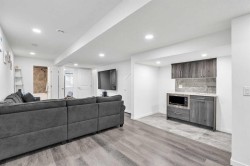 Welcome to your dream home in Glacier Ridge! This beautiful duplex with a finished basement and detached double garage offers over 2,200 sq. ft. of developed living space in one of NW Calgary’s most desirable communities. Step inside and be greeted by 9’ ceilings, 8’ doors, and luxury vinyl plank flooring throughout the main level. The open-concept layout includes a versatile flex space—perfect for a reading nook, home office, or small formal living area—plus a spacious dining nook, stunning kitchen, and inviting great room. The chef-inspired kitchen features quartz countertops, white soft-close cabinetry, a bold black island, ample pot lighting, and upgraded high-end appliances. The great room is ideal for entertaining family and friends, with direct access to the completed deck with privacy screen via the convenient mudroom. Upstairs, you’ll find three bedrooms, two bathrooms, and a dedicated laundry room with built-in linen storage. The primary suite includes a walk-in closet and a private ensuite with a walk-in shower, while both additional bedrooms also feature walk-in closets. The professionally finished basement offers even more living space, including a large rec room, wet bar, fourth bedroom, and full 4-piece bath—perfect for guests or family movie nights. Located close to shopping, restaurants, Costco, and Symons Valley Ranch Market, this home combines luxury, functionality, and location.