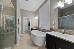 BEAUTIFULLY CURATED | RARE WALK OUT BUNGALOW | POND LOCATION | 3000+ SQ. FT. OF LUXURY LIVING ALL UNDER $1 MILLIONImmaculately maintained and thoughtfully designed, this custom-built Morrison Home is one of the most desirable pond bungalows in the highly sought-after community of Legacy. Perfectly situated on picturesque Legacy Circle—where pride of ownership shines—this fully finished home offers over 3000+ sq. ft. of refined living space.Step inside and be impressed by 10-foot ceilings and oversized windows with Vista Solar Film, which flood the home with natural east-facing morning light. The heart of the home is the chef’s kitchen, featuring timeless maple shaker-style cabinetry, oversized central island with undermount granite sink and flush eating bar, white quartz countertops, a gas cooktop, a built-in wall oven, a pantry, and sleek stainless-steel appliances. The kitchen flows into the large dining area, opening to the grand living room with soaring ceilings, a gas fireplace, patio doors to the upper deck and expansive views of the pond and natural areas. Gleaming hardwood floors and a staircase with wood railing add a sense of elegance and warmth throughout. The spacious primary suite offers 10' ceilings, a walk-in closet with California Closet built-ins, and a spa-inspired ensuite with a stand-alone soaker tub, separate oversized tile shower with 10 mil glass doors and dual vanities. The main floor den/office is featured at the front entry with views to the west. The fully developed walkout lower level features two additional bedrooms, a recreation room with a wet bar, a full bath, and an oversized utility/storage room, a tankless water heater—all perfect for family living and entertaining. Step outside to your very own private oasis with an upper BBQ deck, a lower concrete patio pavers, a custom shed, a large grassy area, and mature landscaping with trees that offer beauty and privacy. The east-facing backyard is designed for relaxation and entertaining.Additional highlights include:• Stone and stucco exterior with elegant curb appeal• Upper deck for morning coffee moments• Resort-style outdoor living spaces • Double attached front garage with epoxy finished floorsThis is a rare offering in an outstanding family community—luxury, lifestyle, and location all in one.Check & compare—this one is a must-see! Call your friendly REALTOR® today to book a private viewing.