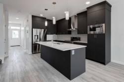 Introducing the COHEN: an amazing, BRAND NEW attached home by EXCEL HOMES offering 1733 SF above grade of upgraded luxury! Nestled in the vibrant Northeast community of Livingston. Step into a life of luxury and convenience with this stunning residence, where every detail has been meticulously crafted for comfort and style. Enjoy the benefits of living in an established neighborhood that brings a plethora of amenities right to your doorstep, along with swift access to major highways. The COHEN offers a sprawling 1733 square feet of thoughtfully designed living space, perfect for both families and entertaining. The open floor plan, complemented by neutral designer tones, creates a welcoming atmosphere that is both elegant and comfortable. The chef-quality kitchen stands as the heart of the home, equipped with ceiling-height cabinets, pot/pan drawers, and upgraded stainless steel appliances, including chimney fan and built-in microwave. The expansive engineered stone countertops, a large island with seating, and a convenient pantry make it a dream kitchen for those who love to cook and entertain. The main floor also features versatile luxury vinyl plank flooring. Uniquely ON THE MAIN FLOOR, you'll find a BEDROOM & FULL 4 PCE BATHROOM. Ascend to the second level where leisure meets luxury in the large central bonus room — ideal for movie nights and family gatherings. The primary bedroom is a true retreat, boasting a walk-in closet and a spa-like ensuite with stone vanity tops. Additionally, two more generously sized bedrooms provide ample space and easy access to the main bathroom. The convenience continues with a laundry room (w/folding counter), strategically located on the same floor. The possibilities extend into the undeveloped basement that has separate SEPARATE SIDE ENTY & ROUGH IN'S FOR 2 BEDROOM LEGAL SUITE (with city permits & approvals)... the utilities are tucked away for easy development. Step outside to a southeast-facing backyard that's perfect for relaxation and outdoor activities. You'll love the convenience of the REAR DOUBLE DETACHED GARAGE (not yet built - seasonal item)! Don't miss the chance to own this never-lived-in gem with quick possession available. Experience the blend of luxury, comfort, and convenience in Livingston—welcome to your new dream home at the COHEN. This home will include front & back yard sod. Also includes complete interior sprinkler system to main and upper floors!