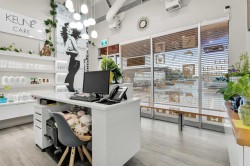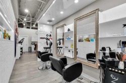 A beautifully designed and fully built-out hair salon located in the heart of South Calgary’s bustling commercial corridor at 9737 Macleod Trail SW. Situated in the highly visible Southland Crossing Plaza, this turnkey salon offers unmatched exposure and convenience, surrounded by major anchor tenants, dense residential towers, and strong daily foot and vehicle traffic.Positioned directly across from Southcentre Mall and just steps away from the C-Train Station, the location provides exceptional access for both clients and staff. Aerial views showcase its premium positioning along Macleod Trail with signage visibility that captures thousands of daily commuters.The exterior features a vibrant, welcoming storefront framed by established neighbouring businesses, offering excellent walk-up accessibility and surface parking. Inside, the salon is thoughtfully designed with a modern aesthetic—high ceilings, custom lighting, sleek flooring, and a bright, welcoming reception area. Functional layout includes multiple workstations, a stylish product display, and an inviting atmosphere that speaks to both elegance and efficiency.Whether you're an established stylist looking to elevate your brand or an investor seeking a high-exposure retail opportunity, this space is ready to impress. Its meticulous buildout and unbeatable location make it an exceptional offering in one of Calgary’s most vibrant commercial hubs.
