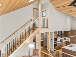 Perfectly positioned in South Canmore, this contemporary 4-bedroom, 4-bathroom duplex property combines timeless craftsmanship with a modern mountain aesthetic, offering refined design and everyday functionality in an exceptional location. From the moment you enter, every detail reflects quality. Site-finished white oak flooring, custom solid oak, open-riser stairs, and soaring clear fir vaulted ceilings set a warm and sophisticated tone. At the heart of the main level is a custom walnut kitchen designed for both daily living and entertaining. A spacious granite island anchors the space, while top-tier Sub-Zero and Wolf appliances, including a Sub-Zero wine and beverage fridge, Wolf induction cooktop, wall oven, and steam oven make this a chef’s dream. Practical luxury is everywhere: an Everhot water tap for instant tea, a Kinetico soft water and filtration system, a discreet built-in Hailo step ladder tucked into the base cabinetry, and thoughtful storage solutions that elevate functionality without compromising beauty.The dining area, framed by vaulted ceilings and large windows, feels open yet intimate, while the great room showcases a modern concrete gas fireplace and floor-to-ceiling windows that frame the mountains perfectly. Step outside onto the expansive deck, perfect for morning coffee, evening wine, or hosting guests against a backdrop of mountain views.The home features two beautiful and spacious primary retreats. The main floor suite is filled with natural light and has a stylish walk-in closet. It also offers a spa-inspired ensuite with dual sinks, a steam shower, heated towel bar, and a Toto toilet with bidet seat. Head up the stunning, open riser stairs to the second primary suite which offers a similar luxurious ensuite, with the addition of a deep soaker tub. On the ground level, a cozy family room offers the ideal spot for movie nights or game days, while a bright home office makes working from home effortless. A well-designed laundry room with abundant cabinetry, counter space, and a drying cabinet ensures that even chores feel streamlined. Completing this level are a fourth bedroom, a fourth full bath, and an epoxy-finished, heated double garage with ample space for all your mountain gear.Additional features such as new air conditioning, Vacuflow, and thoughtful built-ins throughout the home further enhance comfort and convenience. And outside your door, South Canmore’s best amenities await...Main Street, Spring Creek, Bridgette Bar and vibrant local cafés and shops are all just a short stroll away.
