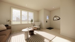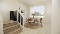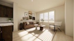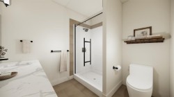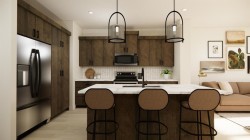 Welcome to the FIRST of EIGHT new half-duplex units to be built in the wonderful new community of Malloy Landing in the town of Coaldale! This terrific Edderton model is one of the most popular two storey layouts built by Stranville Living Master Builder and for good reason. This thoughtful main floor design incorporates a large welcoming living room and an ample dining room separated by Stranville Living's beautifully appointed kitchen that includes cabinetry by Adora Cabinets, a fully tiled backsplash, and quartz countertops for both the base cabinets and island with extended eating bar. On the upper level, you'll find all three bedrooms, both a primary ensuite and main bathroom, and laundry room set up for a stacking unit beside several shelves for storage. These terrific new duplexes are now under construction and will be ready for occupancy in the spring of 2026. Malloy Landing is the future of residential living in Coaldale and the Shift Rec Center and new high school are just the beginning of many compliments coming to this amazing new development! There's nothing like NEW! Photos are renderings but are a reasonable depiction of actual finishes selected by the builder's design team. Two exterior options and two interior options are available. Cobblestone exterior and interior package "A" shown here.