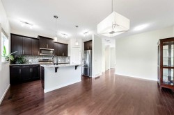 Welcome Home!!! This 1579 sq ft, Calbridge built townhome is nestled in the sought after community of Sunset Ridge with amazing views of the stunning valley covered with lush forests. When you step into this home you can tell it’s been well taken care of. We start with a large foyer to greet your guests, as you look above to a beautiful high vaulted, brightly lit ceiling. There is plenty of space to wipe your dogs paws with access to the attached garage. Up one flight and you have beautiful hardwood floors that flow throughout the entire main floor. A great open floor plan with a large kitchen and living room area. The kitchen has plenty of counter and cupboard space, a pantry, stainless steel appliances, and gorgeous granite countertops. From the kitchen/dining room you can step out onto the deck where you back onto a green space with no neighbours behind! Great place to BBQ! The living room has tons of space to host friends, a cozy fireplace, with large sliding glass windows which leads to an impressive front patio to take in the views of the valley as you have your morning coffee. The main floor is capped off with a tiled powder room. The upstairs has 3 bedrooms, the large master bedroom has a 3 piece ensuite, a walk in closet and large windows to take the views in. The laundry room is conveniently placed upstairs so you don't have to carry your clothes all the way downstairs. There is a 4 piece bathroom which finishes off the upper floor. The home has a great double attached tandem garage. The hot water tank was just recently replaced. Amazing walking paths to take the dogs out, and close to schools, shopping and is situated perfectly to get out of town, a 45 minute drive to Canmore/Banff. This place is perfect for a family, investor, or a first time home buyer! Don't miss out!!
