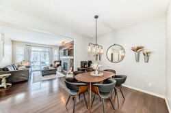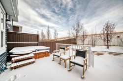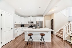 Welcome home to this exceptional semi-attached two-storey home located in the highly sought after community of River Song. This property is conveniently located walking distance to Bow Valley High School, kms of paths down to the Bow River, a quick drive into town over the Jack Tenant Bridge or out to the highway for great access to Calgary, Kananaskis and Banff National Park. This beautifully upgraded home includes an oversized single attached garage with storage and workshop area, large landscaped lot backing on green space and a HOT TUB! Inside you will find 4 bedrooms, 3.5 bathrooms and impressive 9’ ceilings on both the main and upper levels, ample space for the whole family! The modern kitchen offers stainless steel appliances, a tiled backsplash, white quartz countertops, a large centre island, and contemporary white cabinetry with storage, flowing seamlessly into the dining area and spacious living room highlighted by a natural gas fireplace with stacked stone surround, mantel and striking barn board feature wall to bring in plenty of warmth. The patio doors off the living room lead you to a fully landscaped, private backyard oasis ideal for outdoor entertaining. Including a hot tub where you can soak your worries away and a private fire pit area with paving stones and backing onto green space for ultimate peace and privacy. Upstairs, the generous primary retreat includes a walk-in closet and a 4-piece ensuite with double sinks, a large walk-in shower, alongside two additional bedrooms, a full 4-piece bathroom, convenient upper-level laundry, and a large bonus room with vaulted ceilings and views to the east. The newly developed basement showcases unique brick, barn board, and shiplap feature walls and includes a spacious recreation room perfect for guests, in-laws or the kids. You will also find the fourth bedroom and a 3-piece bathroom with in-floor heating! Book a showing today!