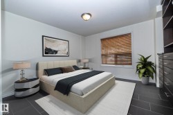 Manhattan Lofts - ideally situated along Saskatchewan Drive and walking distance to a number of key destinations. University Hospital, U of A Campus, Kinsmen Field House Rec Center, numerous shops, restaurants & cafes that line 109 St & Whyte Ave. Also within walking distance to downtown core and extensive river valley trail system. This expansive 2-story open concept loft style condo has an outstanding floor plan. All rooms are generous in size. Floor plan lends well to shared accommodations or hosting overnight guests. Bedrooms and full baths on each floor provide distance and privacy. Each level has a designated living room and added space to set up a home office. Other Features: In-suite laundry/storage, A/C, 17ft ceiling heights, large windows to take advantage of natural light, private patio off main level facing downtown skyline, granite counters, stainless appliances, in-floor heating and 2 underground heated stalls. Great value and flexible usage. Virtually Staged. Access to unit on flrs 1 & 2.