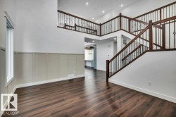 Welcome to Klarvatten! This well-built new home offers over 2,915 sq. ft. of finished living space, designed to impress with 5 spacious bedrooms and 4.5 bathrooms! The grand foyer offers soaring 18-foot ceilings, flowing seamlessly into the open-concept main floor. The living room, also enhanced by 18-foot ceilings, features a contemporary mantel fireplace for warmth & elegance. The chef’s gourmet kitchen is a true showstopper, offers a breakfast island & nook, modern cabinetry, quartz countertops & backsplash & modern copper-finished faucet fixtures. A full SPICE KITCHEN offers extra cabinetry, counter space & cooking convenience. The dining area opens directly to the deck & fully fenced backyard. Upstairs, you’ll find four generously sized bedrooms and three full bathrooms. The primary suite features a spa-inspired 5-piece ensuite w/ dual vanities, glass shower, & jet soaker tub. The undeveloped lower level provides outstanding potential for creating your extra living space! Close to all amenities.