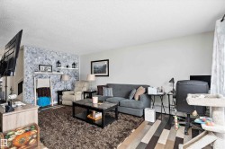 This unique styled, 2 level apartment condo in Belvedere, offers over 1100 sq ft of living space. The main floor features a galley kitchen with newer stainless appliances, dining room, 2pc bathroom and a spacious living room with sliding doors leading you to the private, sunken walk-out patio. The upper level has 2 good size bedrooms, a large 4-pc bathroom and a good sized storage room. From there you also have access to the newly renovated, common laundry room just outside the upper door. In addition to the in suite storage there is also a separate indoor storage room (1.66mx1.11m) in the building foyer by your suite. The complex has seen many upgrades including windows, siding, shingles, resurfaced parking lot, laundry rooms & heating system. Your parking stall is only a few steps away from the buildings front entrance and there is plenty of visitor parking. Close to schools, restaurants, shopping and public transportation..